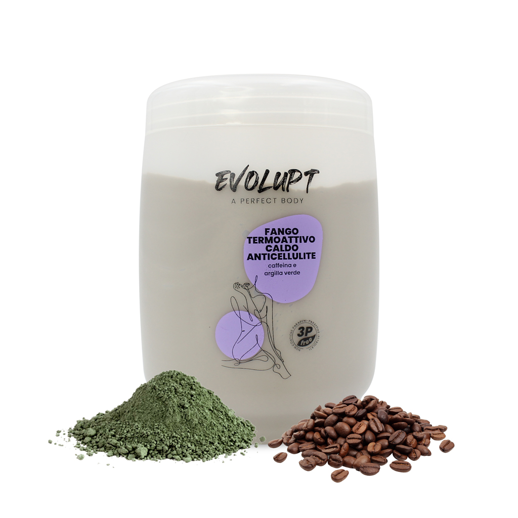 Trattamento corpo ad azione autoriscaldante studiato per combattere la cellulite e gli accumuli adiposi. A base di Fanghi del Mar Morto e arricchito con Caffeina, Argilla Verde e Tabacco, il fango Evolupt, contrasta la formazione della cellulite ed è efficace anche nei casi di cellulite fibrosa consolidata. Rimodella le zone trattate e dona elasticità e tono. Lascia la pelle levigata e tonica. Ha un’effetto riscaldante che favorisce la vaso dilatazione e l’assorbimento dei principi attivi contenuti nel fango.